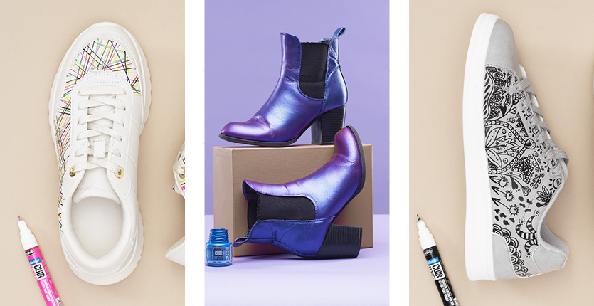 Hvide sneakers er som et blankt lærred, der bare venter på at blive dækket med farvefelter og mønstre. Med Pébéo Cuir Leather-lædermaling kan du male på både ægte og syntetisk læder. Bland dine egne nuancer, eller brug dem, som de er direkte fra dåsen. Farverne fås også som penne, så du kan tegne detaljer og mønstre. Lad dig inspirere af din yndlingskunstner eller et mønster, du ekstra godt kan lide, og tegn det på dine sko.