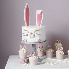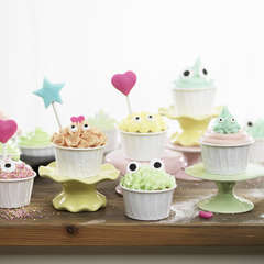 Rul sort fondant ud og skær flagermus ud. Rul gul fondant ud til en måne og flagermusøjne.