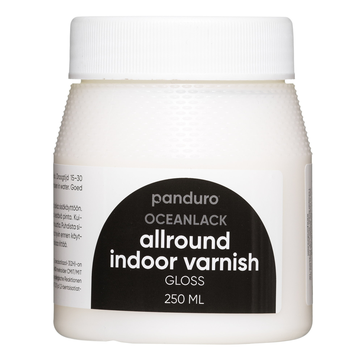 Oceanlak giver en meget slidstærk overflade på mange underlag. Fås med blank, halvblank og mat finish, som er aldersbestandig og ikke gulner. Lakken er vandbaseret, tørrer på ca. 15-30 minutter og egner sig bedst til træ, pap, gips – men det primære formål er at beskytte møbler og brugsgenstande af træ. Lakken tørrer med minimal rejsning af træet. Pensler og arbejdsredskaber rengøres i vand. Rør rundt før påføring – kun til indendørsbrug. Oceanlak blank 250 ml
