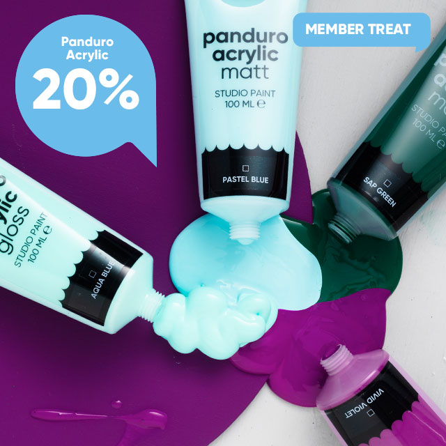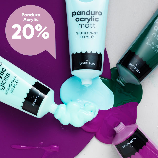 Löydä uusi luova harrastus akryylivärien kanssa! Olitpa aloittelija tai ammattilainen, voit maalata upeita tauluja akryyliväreillä ja yksinkertaisilla tekniikoilla. Juuri nyt saat 20% alennusta sekä Panduro Acrylic - että Kreatima Acrylic -valikoimasta ja kaikista Panduro- ja Kreatima-maalauskankaista.* Joten tartu tilaisuuteen, ota sivellin käteen ja maalaa seuraava mestariteoksesi akryyliväreillä!