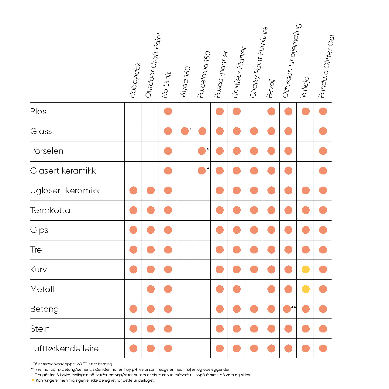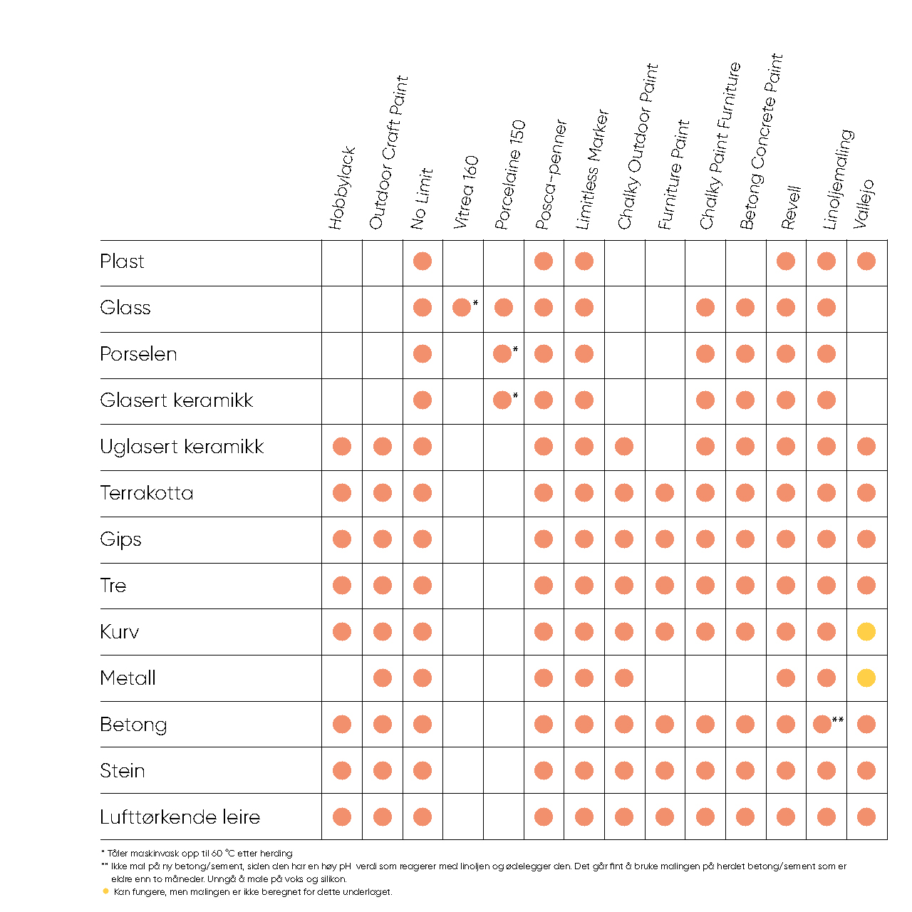 Matt og vannbasert tremaling med følelsen av kalkmaling. Til innendørs bruk. Hefter til de fleste materialer.