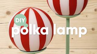 Forvandle en vanlig bordlampe med glasskjerm til en sirkusinspirert fargeklatt. De fine polkagrisstripene på lampen lager du ved først å maskere med tape og deretter male hele lampen. Dra av tapen, og voilà – du har en stripet lampeskjerm som ligner et fristende drops!