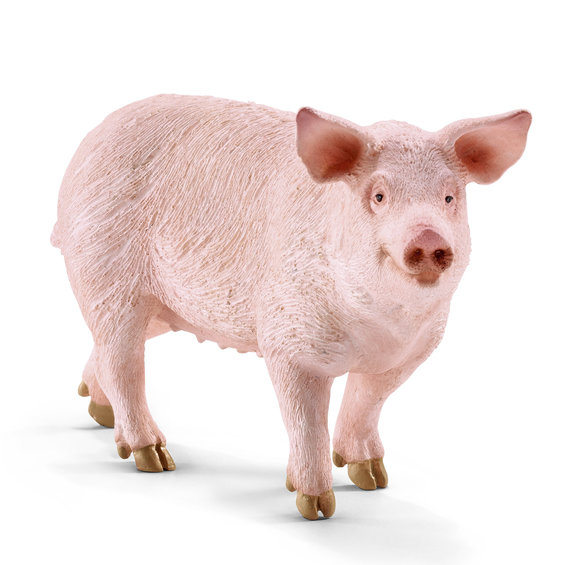 Schleich Farm World/Bondegård– er en produktserie fylt med flotte og naturtro dyr fra en real, gammel bondegård! Hunder, katter, høner, lam, kuer, hester, kaniner, griser og esler – ofte må mange forskjellige dyr komme overens på en bondegård. De ulike dyrene fra Schleich Farm World er fremstilt i plast av høy kvalitet, som deretter slipes og kontrolleres nøye. Deretter males de svært nøyaktig og fremstår med en troverdighet som det ellers er vanskelig å finne blant leketøy nå for tiden. Hver modell er virkelig et lite kunstverk. Den tyske modellprodusenten Schleich startet virksomheten allerede i 1935 – og erfaringen synes og føles i de ferdige produktene. Fra 3 år.Gris, 35x105x6 mm.