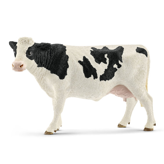 Schleich Farm World/Bondegård– er en produktserie fylt med flotte og naturtro dyr fra en real, gammel bondegård! Hunder, katter, høner, lam, kuer, hester, kaniner, griser og esler – ofte må mange forskjellige dyr komme overens på en bondegård. De ulike dyrene fra Schleich Farm World er fremstilt i plast av høy kvalitet, som deretter slipes og kontrolleres nøye. Deretter males de svært nøyaktig og fremstår med en troverdighet som det ellers er vanskelig å finne blant leketøy nå for tiden. Hver modell er virkelig et lite kunstverk. Den tyske modellprodusenten Schleich startet virksomheten allerede i 1935 – og erfaringen synes og føles i de ferdige produktene. Fra 3 år.Holstein, ku, 82x126x82 mm.