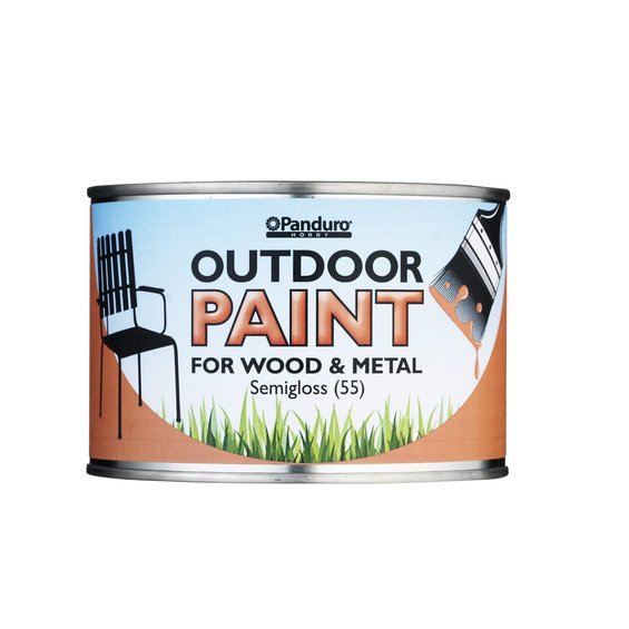 Panduro Outdoor Paint, halvblank (glansverdi 55), vannbasert, fargebestandig Akrylat lakkmaling for utendørsbruk, til møbler og dekormaterialer av tre, metall og terrakotta. Brukes på rene, tørre flater - vask med malerens. Flater av jern, stål og annet metall behandles med rustbeskyttelsesprimer før maling og kvister i treverket kan behandles med kvistlakk (Shellakk). Gamle malte flater som består av fast og ikke kalkede underlag kan males over, dog ikke flater malt med slammaling som Falu rødmaling. Rør i boksen før maling. Mal 2-3 lager for best resultat. Støvtørr 2-3 timer, overmalbar etter 8-12 timer. Gjennomtørr/helt herdet 2-3 uker. Lukk åpnet boks godt, tørk av kanten. Rekker til 3 - 3,5 m². Innhold 500 ml.