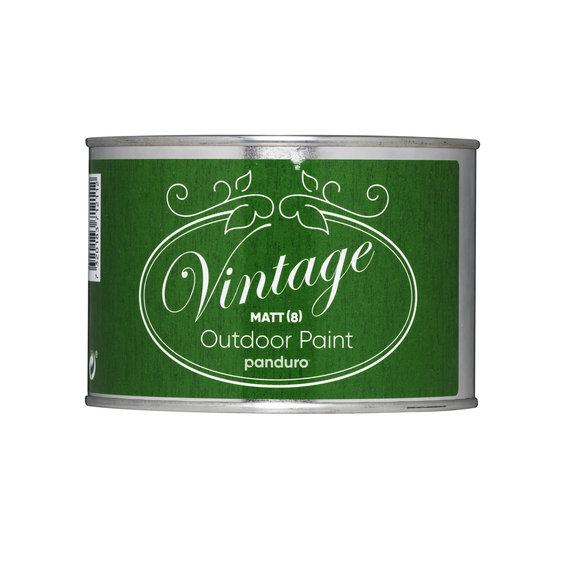 Panduro Vintage Outdoor Paint, for utendørs bruk på for eksempel tre, terrakotta, sink m.m. Ikke kast, men resirkuler! Med våre behagelige vintagefarger får loppemarkedsfunn og gamle krukker m.m et helt nytt liv. En malt benk, espalier eller pallekarm kan løfte en hel hage. Matt, vannbasert og fargebestandig akrylmaling, glansverdi 8. Brukes på rene og tørre flater. Blanke flater slipes med sandpapir før maling. Rør om innholdet i boksen før bruk. Overflatetørr etter 15 minutter, overmalbar etter 1 time. Fullt herdet etter 24 timer. Mal innendørs, la stå i 24 timer før gjenstanden flyttes ut. Eller mal utendørs (hvis temperaturen er over 10 °C), men ikke i direkte sollys eller regnvær. Trenger du en boksåpner? Se art.nr. 299900. Beskyttelseslakk, se 371219. Volum 500 ml. Rekker til 3-4 m².ART_LABELGrønn.