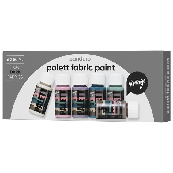 Tekstilmalingsett med 6 vintagefarger, fra Panduro Palett – en god start når du for tiende gang har beklaget deg over kjedelige klær i butikkene – eller hvis du er klimasmart og ønsker å friske opp ting som du allerede har i garderoben! Settet inneholder 6 farger beregnet for bomullsstoffer og er enkle å komme i gang med.