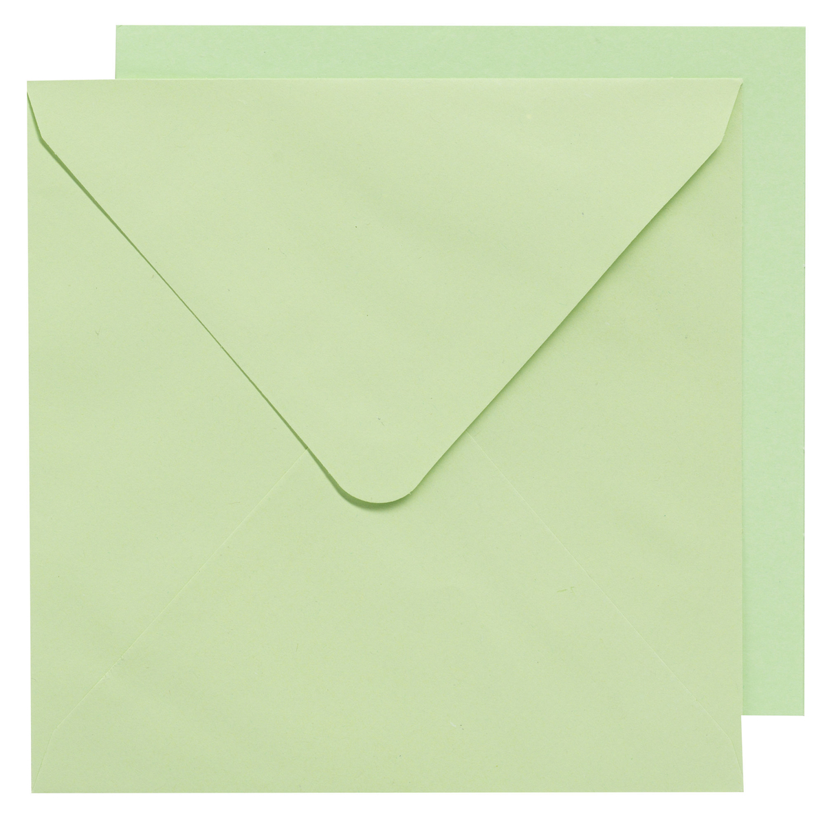Kortkit Basic kvadrat, 10+10 stk. Ensfarget papir uten mønster. Doble kort, 14x14 cm, vekt 180 g. Konvolutter 14,5x14,5 cm, vekt 80 g.