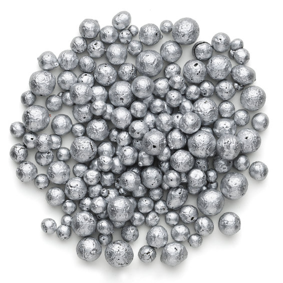 Dekorsten, av brent leire (lecakuler), ca. 4-8 mm, metallicfargede. Til borddekorasjon, planteterrarium o.l. Leveres i plastboks 6.5x6.5x6 cm. Innhold ca. 375 g/250 ml.Sølv