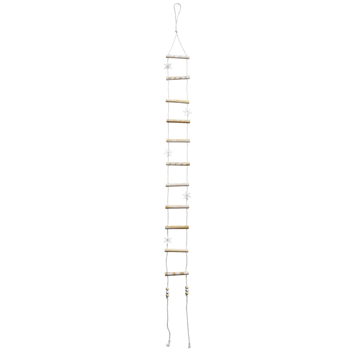 Taustige mini, pinner og snøfnugg av tre på snor, bredde 7 cm, lengde 90 cm. Heng opp taustigen til miniatyrlandskapet, nissedøren e.l.