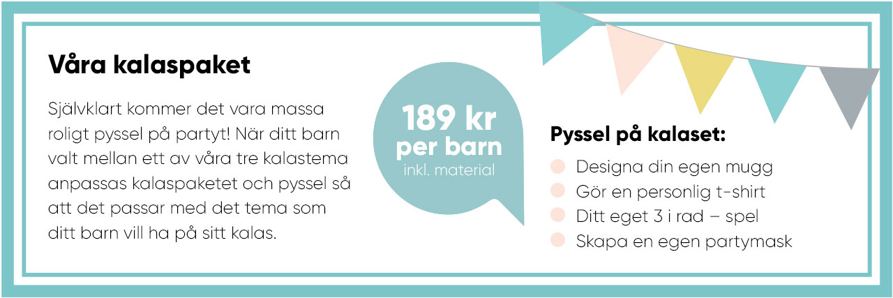 Kan man ha sitt barnkalas i en Panduro butik? Självklart! Vi på Panduro älskar pyssel och partyn. Därför ordnar vi färdiga pysselpartyn i våra butiker, där barnens fantasi och skaparglädje får stå i fokus. Och du slipper tänka på allt som ska ordnas för ett barnkalas hemma. Vi fixar material och roliga pyssel för barnen att underhålla sig med. Välj mellan våra skräddarsydda tema: Fantasy, Super Hero eller Scary. På kalaset får barnen skapa sina egna roliga pyssel baserat på våra teman. Alla teman har anpassade aktiviteter som utvecklar barnens kreativitet samtidigt som man får roliga saker och tips på pyssel att ta med sig hem. Allt du som vuxen behöver göra är att bjuda in alla kompisar. Så ser butiken till att det blir en oförglömlig och rolig stund med fokus på kreativitet. Boka ditt barns pyssliga barnkalas i din favoritbutik!