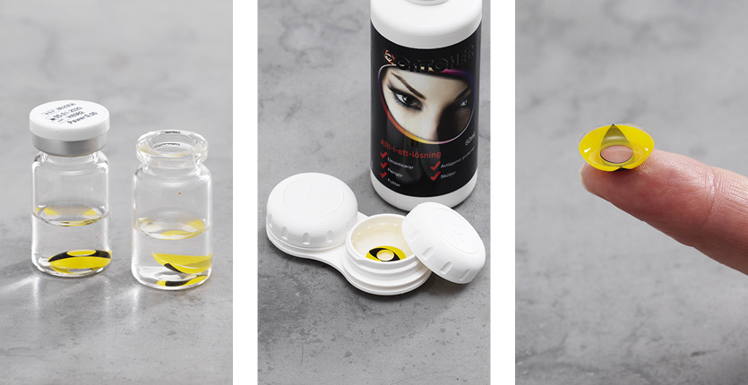 Innan du sätter i dina färgade linser måste de ligga i linsvätska i 4 timmar. Linsvätskan rengör och fuktar linserna så att dina ögon skyddas från smuts och uttorkning. Därför ska du också förvara linserna i linsvätska när du inte använder dem.