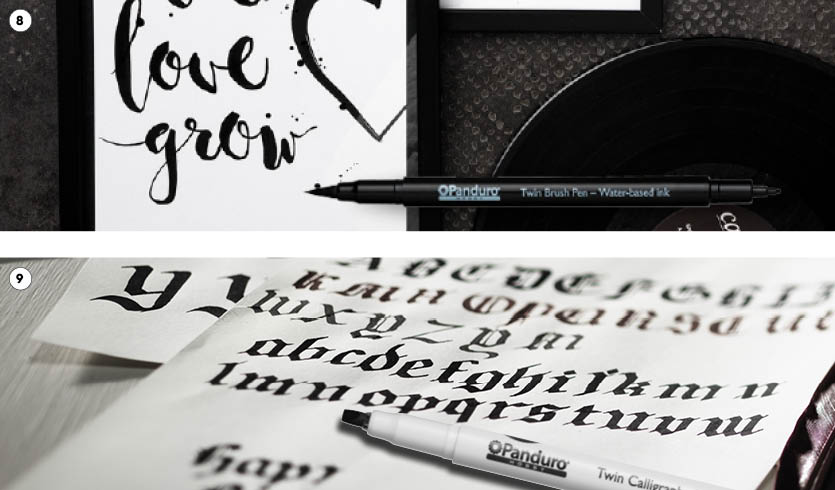Om du istället vill ha lite mer klassisk kalligrafikänsla ska du satsa på en kalligrafipenna med doppstift. Då kan du växla mellan olika metallspetsar som du doppar i bläck eller tusch under tiden du skriver.