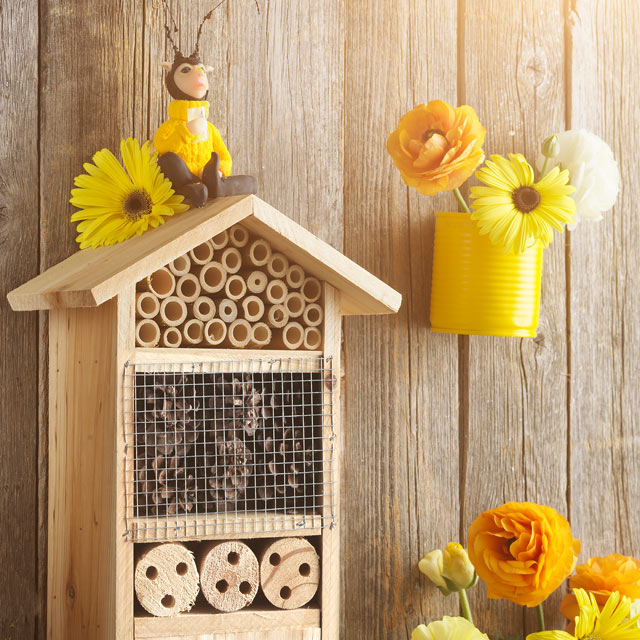 Binas naturliga boplatser, som döende träd, är också på väg att försvinna på grund av människans påverkan. Här kan du hjälpa till, dessutom på ett sätt som är riktigt roligt. Nu när du vet hur viktiga insekterna är kommer du att välkomna dem och deras hemtrevliga surr. Sätt upp ett insektshotell eller flera i trädgården, på uteplatsen eller balkongen.