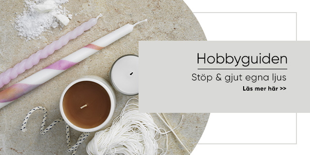 Har du sett vår nya ljusskola? Den innehåller allt du behöver veta för att stöpa eller gjuta ljus. Men även tips på dekoration eller hur du målar och skriver text på färdiga stearinljus. Du kan förstås också skapa en helt personlig adventsljusstake eller göra egna vackra ljusstakar med stearinljus. Gjut ljus och blanda i en ljuvlig doft av kanel som sprider julstämning i hela hemmet. Här hittar du ljusmassa, bivax, sojavax, julgransljus, vekar och ljushållare för att göra egna juleljus. Vi har så klart också julbelysning och ljusslingor som du kan lysa upp både fönster och små vinterlandskap med under den mysiga juletiden. Låt julefriden infinna sig med stämningsfullt ljus.