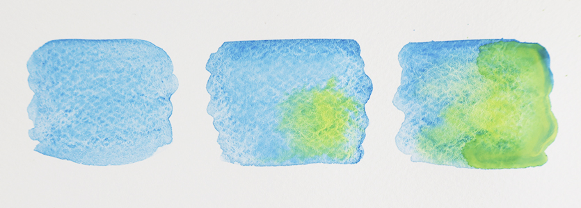 Vill du ha en jämn färgblandning, eller en melerad effekt? Utifrån om du arbetar med vått i vått eller palett när du blandar din färg kan du faktiskt få fram helt olika resultat. Med en palett kan du droppa en sekundär färg i din primära och blanda fram en helt ny nyans. Lägger du däremot din sekundära färg ovanpå en våt färg på ett papper, kommer du se att färgerna delvis kommer att blandas och en spännande melerad effekt kommer att uppstå.