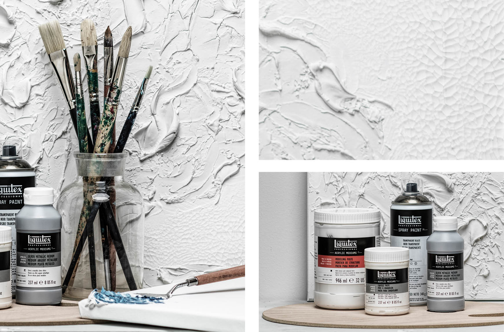 Du kan såklart välja att göra din spackeltavla med spackel förstås. Men det går minst lika bra att använda målarmedium som modelleringspasta. Fördelen med modelleringspasta är att du kan blanda den med din önskade konstnärsfärg medan spackel kräver att du målar över tavlan för att få den riktigt kritvit, eller i någon annan färg för den delen.