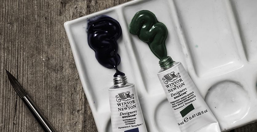 Designers gouache, Winsor & Newton: Med färg från Winsor & Newton kan du räkna med att få fantastiska resultat. Deras gouachefärg har hög kvalitet och täcker jämnt och fint. Färgen är populär bland designers, illustratörer och formgivare världen över tack vare sina pigmentrika och ljusäkta färgnyanser. Finns styckvis i tub men även färdiga set med sex eller tio färger.