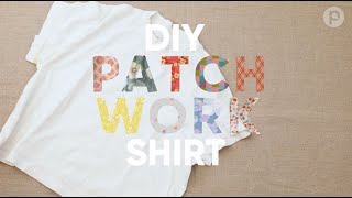 Har du fått en fläck på tröjan eller har du bara tröttnat på enfärgat? Gör då en personlig t-shirt med kul patchwork-motiv! Du kanske vill skriva ditt namn i olika mönster eller sätta ihop små tyglappar till kul figurer som vi har gjort här.