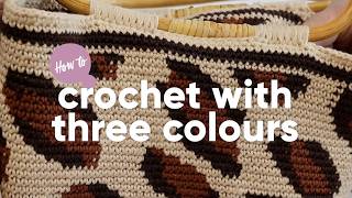 Med bomullsgarn i olika bruna nyanser kan du virka ett eget coolt leopardmönster. Du utgår från en väskbotten i konstläder och virkar sen djurmönstret med fasta maskor runt tills det är dags att virka fast två snygga bambuhandtag längst upp.
