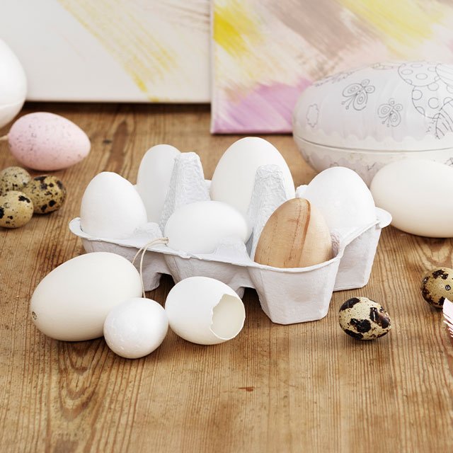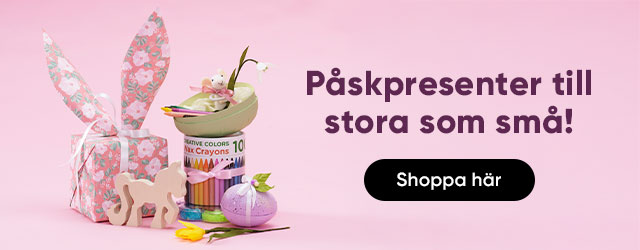 Vad symboliserar väl påsken mer än ägg? Ägg att dekorera, äta, måla, fylla med påskgodis och gömma. Inget ont om att måla ägg, men det finns ju så mycket mer man kan göra! Du kan dekorera både pappägg, träägg, styrolitägg och plastägg med pärlor, glitter, garn, decoupage och lera. Och även om de flesta ägg fylls med påskgodis till påskharens äggjakt, så har vi även massor av små pyssel och annat kul som du kan lägga i våra delbara pappägg som finns i flera olika storlekar.