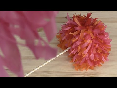 Fixa riktigt festliga blommor till nyår eller fest! Här har vi skapat praktfulla pompoms av silkespapper som garanterat kommer att skapa feststämning på årets nyårsfest. Vi har gjort våra i vitt och guld och du behöver två förpackningar silkespapper per pompom i denna storlek. Om du vill ha mindre pompoms är det bara till att göra cirklarna mindre.