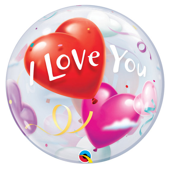 Bubbelballong rund, perfekt dekoration till fest eller andra roliga arrangemang med tema. Ballong av plast, ca Ø 56 cm när den är uppblåst. Kan blåsas upp eller fyllas med helium, ej high float. Pris per st. I love you