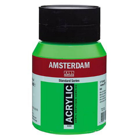 Amsterdam Acrylics 500 ml, – Här har vi samlat våra stora burkar (500 ml) med Amsterdam Acrylics breda och färgsprakande palett från Royal Talens. Färger av prima studiokvalitet med rena och beständiga pigment. Färgerna är härliga och flexibla att arbeta med då de samarbetar väl med både olika medier och helt vanligt vatten. En annan uppskattad aspekt av färgserien är att den praktiskt taget är doftfri. Det man målar med de ljusäkta och beständiga färgerna från Amsterdam Acrylics har alla förutsättningar för att få en lång livslängd under goda förhållanden och förutsatt att man målat på en syrafri canvas. Torktid för tunna lager uppskattas till en halvtimme, men det kan variera om man använt målarmedier.