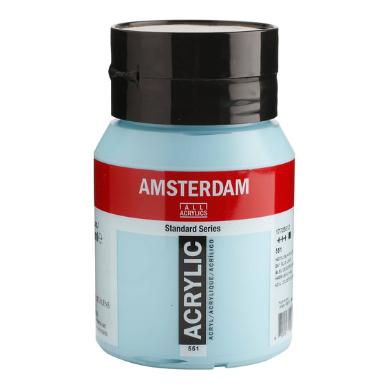 Amsterdam Acrylics 500 ml, – Här har vi samlat våra stora burkar (500 ml) med Amsterdam Acrylics breda och färgsprakande palett från Royal Talens. Färger av prima studiokvalitet med rena och beständiga pigment. Färgerna är härliga och flexibla att arbeta med då de samarbetar väl med både olika medier och helt vanligt vatten. En annan uppskattad aspekt av färgserien är att den praktiskt taget är doftfri. Det man målar med de ljusäkta och beständiga färgerna från Amsterdam Acrylics har alla förutsättningar för att få en lång livslängd under goda förhållanden och förutsatt att man målat på en syrafri canvas. Torktid för tunna lager uppskattas till en halvtimme, men det kan variera om man använt målarmedier.