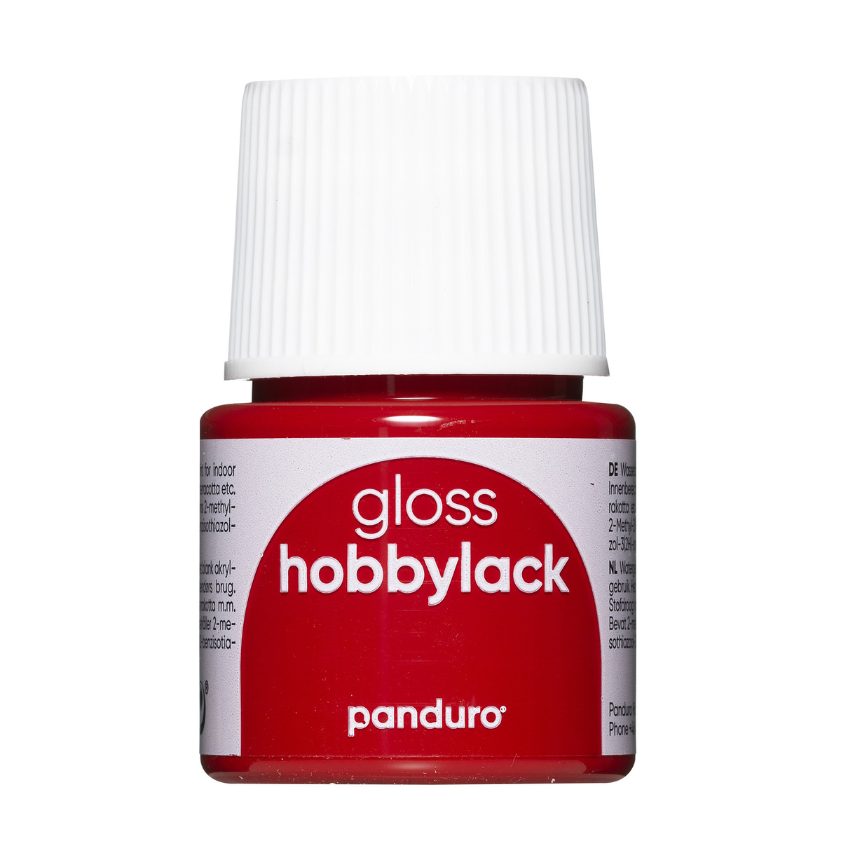 Hobbylack gloss, Panduros egna ständiga storsäljare i årtionden – av en god anledning. Vår hobbylack är ytterst allsidig och förgyller varje projekt och högtid du kan tänka dig. Drivved, snäckor eller stenar från stranden? Pyssel till påsk eller kottar till jul? Hobbylack fastnar på det mesta och kommer sätta färg på ditt verk.Stort sortiment med massor av olika färger á 45 / 250 ml med glansvärde 43–45 avsedda för inomhusbruk. Färgerna är vattenbaserade, blanka och syrafria. Dammtorra efter ca 15 minuter. Samtliga är tillverkade helt utan animaliska produkter och burkarna är tillverkade av 25% återvunnen plast. Ta hand om dina penslar – skölj dem direkt efter användning och låt ej stå i vatten. Återforma därefter spetsen / formen och låt torka.