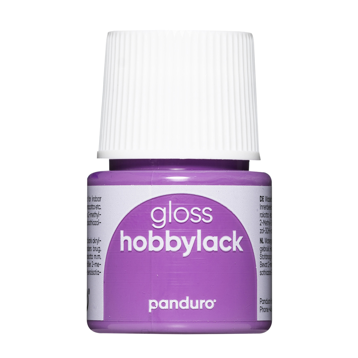 Hobbylack gloss, Panduros egna ständiga storsäljare i årtionden – av en god anledning. Vår hobbylack är ytterst allsidig och förgyller varje projekt och högtid du kan tänka dig. Drivved, snäckor eller stenar från stranden? Pyssel till påsk eller kottar till jul? Hobbylack fastnar på det mesta och kommer sätta färg på ditt verk.Stort sortiment med massor av olika färger á 45 / 250 ml med glansvärde 43–45 avsedda för inomhusbruk. Färgerna är vattenbaserade, blanka och syrafria. Dammtorra efter ca 15 minuter. Samtliga är tillverkade helt utan animaliska produkter och burkarna är tillverkade av 25% återvunnen plast. Ta hand om dina penslar – skölj dem direkt efter användning och låt ej stå i vatten. Återforma därefter spetsen / formen och låt torka.