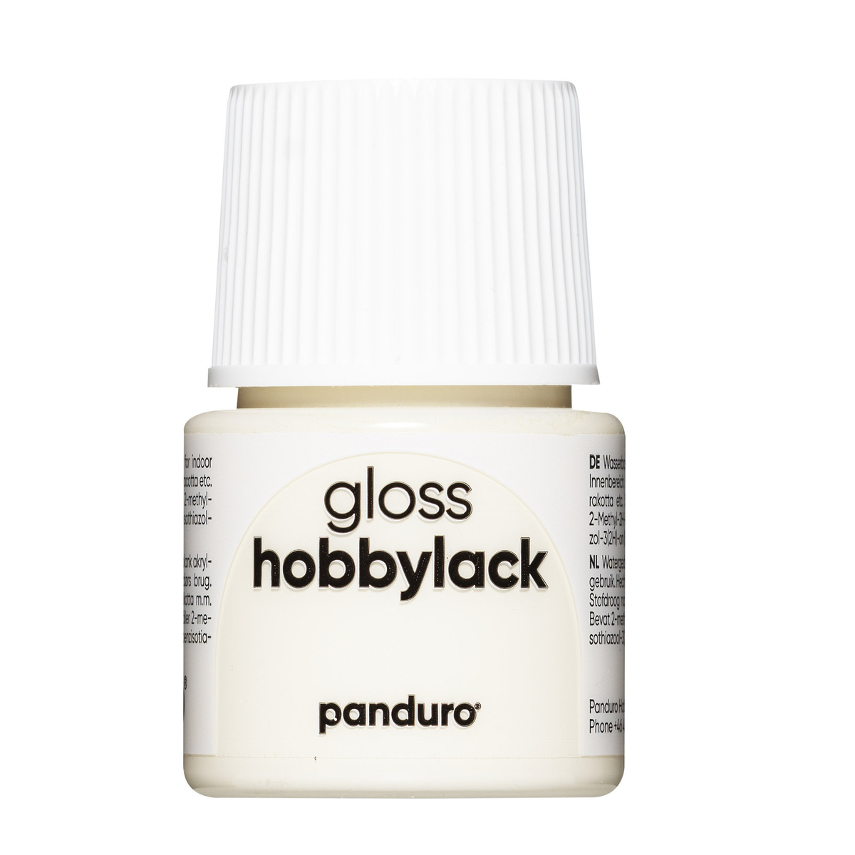 Hobbylack gloss, Panduros egna ständiga storsäljare i årtionden – av en god anledning. Vår hobbylack är ytterst allsidig och förgyller varje projekt och högtid du kan tänka dig. Drivved, snäckor eller stenar från stranden? Pyssel till påsk eller kottar till jul? Hobbylack fastnar på det mesta och kommer sätta färg på ditt verk.Stort sortiment med massor av olika färger á 45 / 250 ml med glansvärde 43–45 avsedda för inomhusbruk. Färgerna är vattenbaserade, blanka och syrafria. Dammtorra efter ca 15 minuter. Samtliga är tillverkade helt utan animaliska produkter och burkarna är tillverkade av 25% återvunnen plast. Ta hand om dina penslar – skölj dem direkt efter användning och låt ej stå i vatten. Återforma därefter spetsen / formen och låt torka.