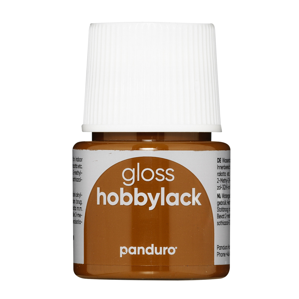 Hobbylack gloss, Panduros egna ständiga storsäljare i årtionden – av en god anledning. Vår hobbylack är ytterst allsidig och förgyller varje projekt och högtid du kan tänka dig. Drivved, snäckor eller stenar från stranden? Pyssel till påsk eller kottar till jul? Hobbylack fastnar på det mesta och kommer sätta färg på ditt verk.Stort sortiment med massor av olika färger á 45 / 250 ml med glansvärde 43–45 avsedda för inomhusbruk. Färgerna är vattenbaserade, blanka och syrafria. Dammtorra efter ca 15 minuter. Samtliga är tillverkade helt utan animaliska produkter och burkarna är tillverkade av 25% återvunnen plast. Ta hand om dina penslar – skölj dem direkt efter användning och låt ej stå i vatten. Återforma därefter spetsen / formen och låt torka.