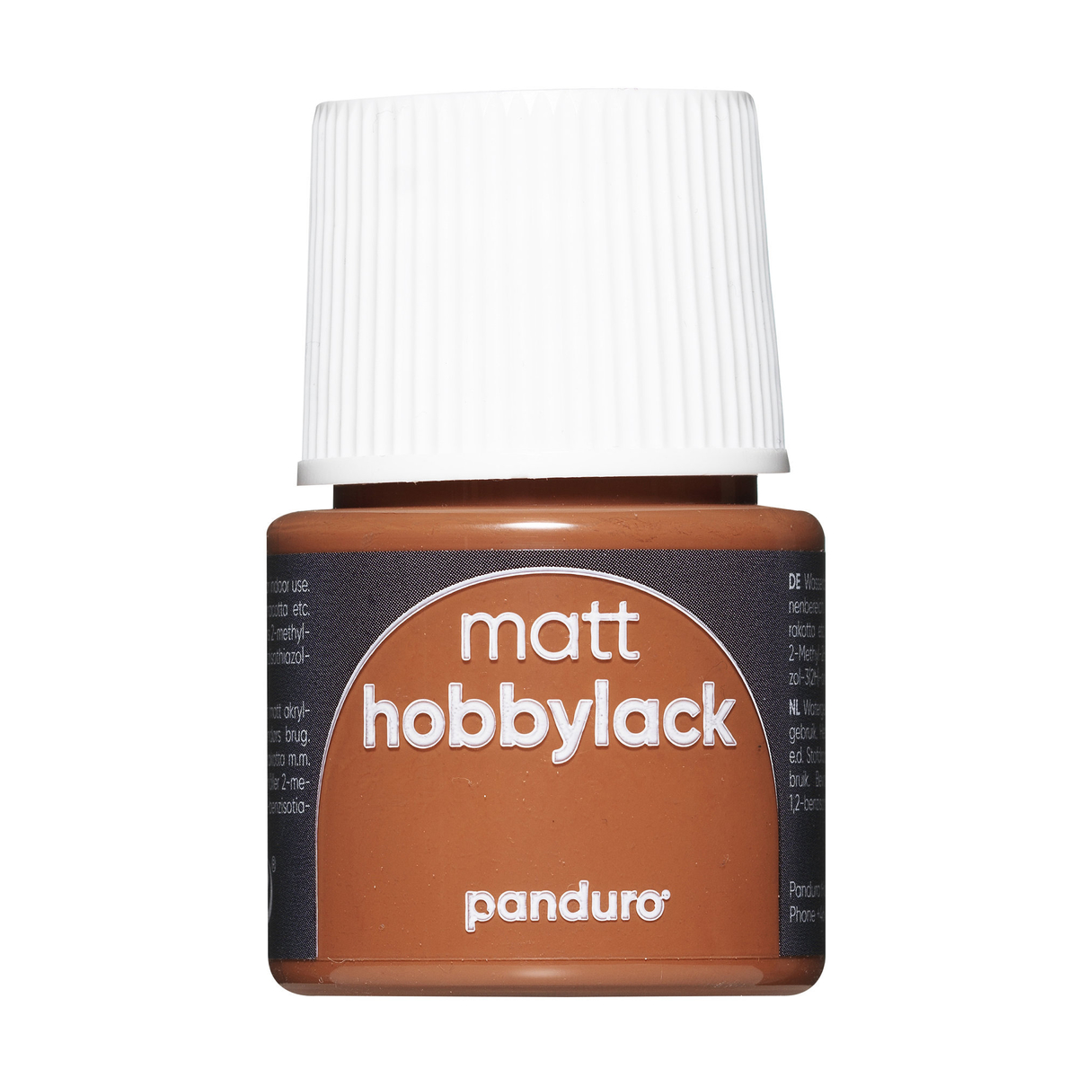Hobbylack matt, Panduros egna ständiga storsäljare i årtionden – av en god anledning. Vår hobbylack är ytterst allsidig och förgyller varje projekt och högtid du kan tänka dig. Drivved, snäckor eller stenar från stranden? Pyssel till påsk eller kottar till jul? Hobbylack fastnar på det mesta och kommer sätta färg på ditt verk. Burkarna innehåller 45 ml och finns i ett stort urval av färger med glansvärde 9–11 avsedda för inomhusbruk. Färgerna är vattenbaserade, matta och syrafria. Dammtorra efter ca 15 minuter. Samtliga är tillverkade helt utan animaliska produkter.Ta hand om dina penslar. Skölj dem direkt efter användning och låt ej stå i vatten. Återforma därefter spetsen / formen och låt torka.