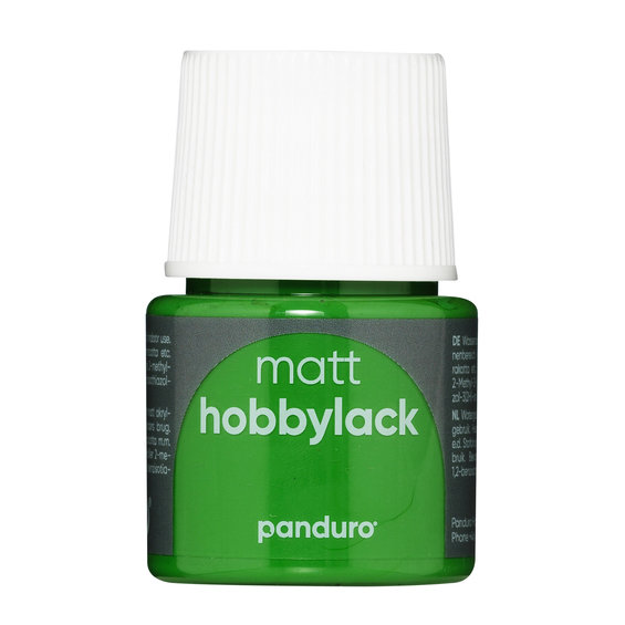 Hobbylack matt, Panduros egna ständiga storsäljare i årtionden – av en god anledning. Vår hobbylack är ytterst allsidig och förgyller varje projekt och högtid du kan tänka dig. Drivved, snäckor eller stenar från stranden? Pyssel till påsk eller kottar till jul? Hobbylack fastnar på det mesta och kommer sätta färg på ditt verk. Burkarna innehåller 45 ml och finns i ett stort urval av färger med glansvärde 9–11 avsedda för inomhusbruk. Färgerna är vattenbaserade, matta och syrafria. Dammtorra efter ca 15 minuter. Samtliga är tillverkade helt utan animaliska produkter.Ta hand om dina penslar. Skölj dem direkt efter användning och låt ej stå i vatten. Återforma därefter spetsen / formen och låt torka.