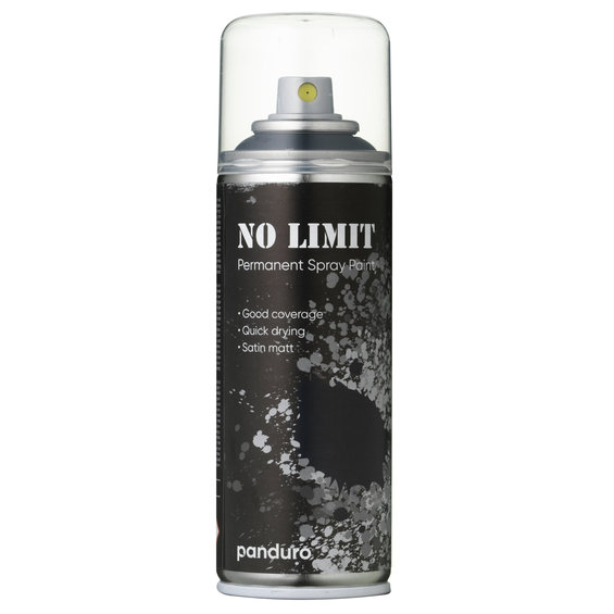 NO LIMIT sprayfärg, innehåll 200 ml (täcker ca 0,5-1 m²). Sidenmatt färg i hög kvalitet för både inom- och utomhusbruk. Snabbtorkande och permanent. Sprayfärgen ger en jämn fin yta, täcker mycket bra och fungerar på det mesta (ej styrolit eller silikon). Ytor av hårdplast ska först grundas, använd "No Limit primer plastic".