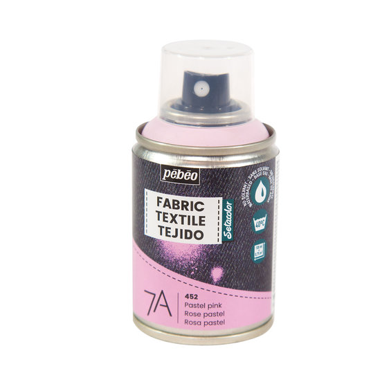 Textilspray 7A, vattenbaserad akrylfärg i sprayflaska. Tygfärg för textil, både mörka och ljusa tyger (förtvättade). Perfekt för mindre accessoarer som kepsar, tygskor (Notera att skor kan vara svåra - du kommer behöva en strykduk mellan skon och strykjärnet samtidigt som du inte bör komma åt gummisulan), hemtextilier och även kläder. Färgen är lämplig för de flesta tyger (bomull, bomullsblandningar, denim, linne och även syntet). Notera dock att behandlade eller impregnerade föremål INTE tar åt sig färgerna särskilt väl p.g.a avstötning. Fixeras med strykjärn (5 min från avigsidan på bomullsvärme utan ånga). Tål tvätt i maskin 40 °C. Specialmunstycke för att undvika stänk. Skaka sprejen väl före användning. Efter användning, håll upp och ned och spreja ut överskottet för att undvika att munstycket kladdar igen. Sprayfärgen finns i flera härliga kulörer. Innehåll: 100 ml (räcker till ca 0,75 m²). Vänligen notera att dessa färger inte räcker för att färga hela plagg utan bara för att skapa detaljer, effekter och små motiv.Pastellrosa