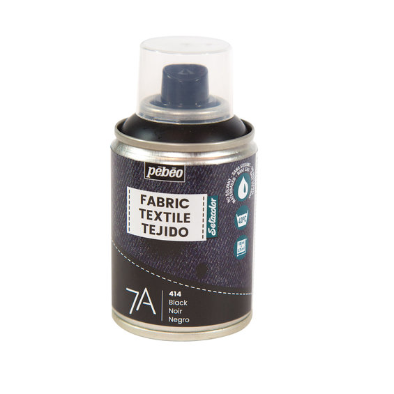 Textilspray 7A, vattenbaserad akrylfärg i sprayflaska. Tygfärg för textil, både mörka och ljusa tyger (förtvättade). Perfekt för mindre accessoarer som kepsar, tygskor (Notera att skor kan vara svåra - du kommer behöva en strykduk mellan skon och strykjärnet samtidigt som du inte bör komma åt gummisulan), hemtextilier och även kläder. Färgen är lämplig för de flesta tyger (bomull, bomullsblandningar, denim, linne och även syntet). Notera dock att behandlade eller impregnerade föremål INTE tar åt sig färgerna särskilt väl p.g.a avstötning. Fixeras med strykjärn (5 min från avigsidan på bomullsvärme utan ånga). Tål tvätt i maskin 40 °C. Specialmunstycke för att undvika stänk. Skaka sprejen väl före användning. Efter användning, håll upp och ned och spreja ut överskottet för att undvika att munstycket kladdar igen. Sprayfärgen finns i flera härliga kulörer. Innehåll: 100 ml (räcker till ca 0,75 m²). Vänligen notera att dessa färger inte räcker för att färga hela plagg utan bara för att skapa detaljer, effekter och små motiv.Svart