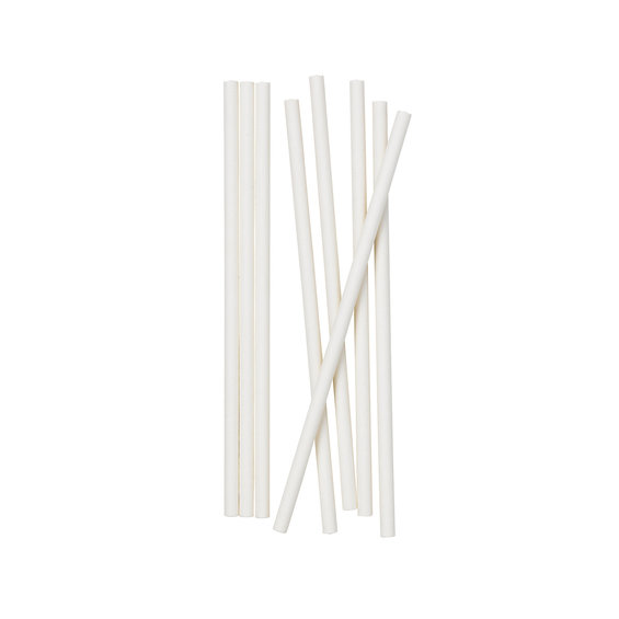 Klubbpinnar, vita pinnar av papper, Ø 6 mm. Livsmedelsgodkända. Förpackning med 50 st.Längd 12 cm.