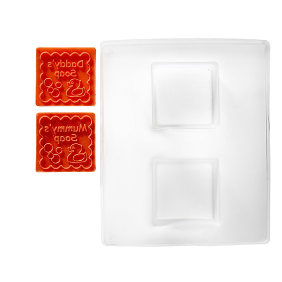 Panduro Soap material och verktyg, formar, tillbehör och roliga detaljer gör det ännu roligare att tillverka sin egen tvål! Formar för tvålmassa - fyrkanter á 5x5 cm. Det ingår även två gummistämplar som ger tvålen texterna Mummy´s soap respektive Daddy's soap.
